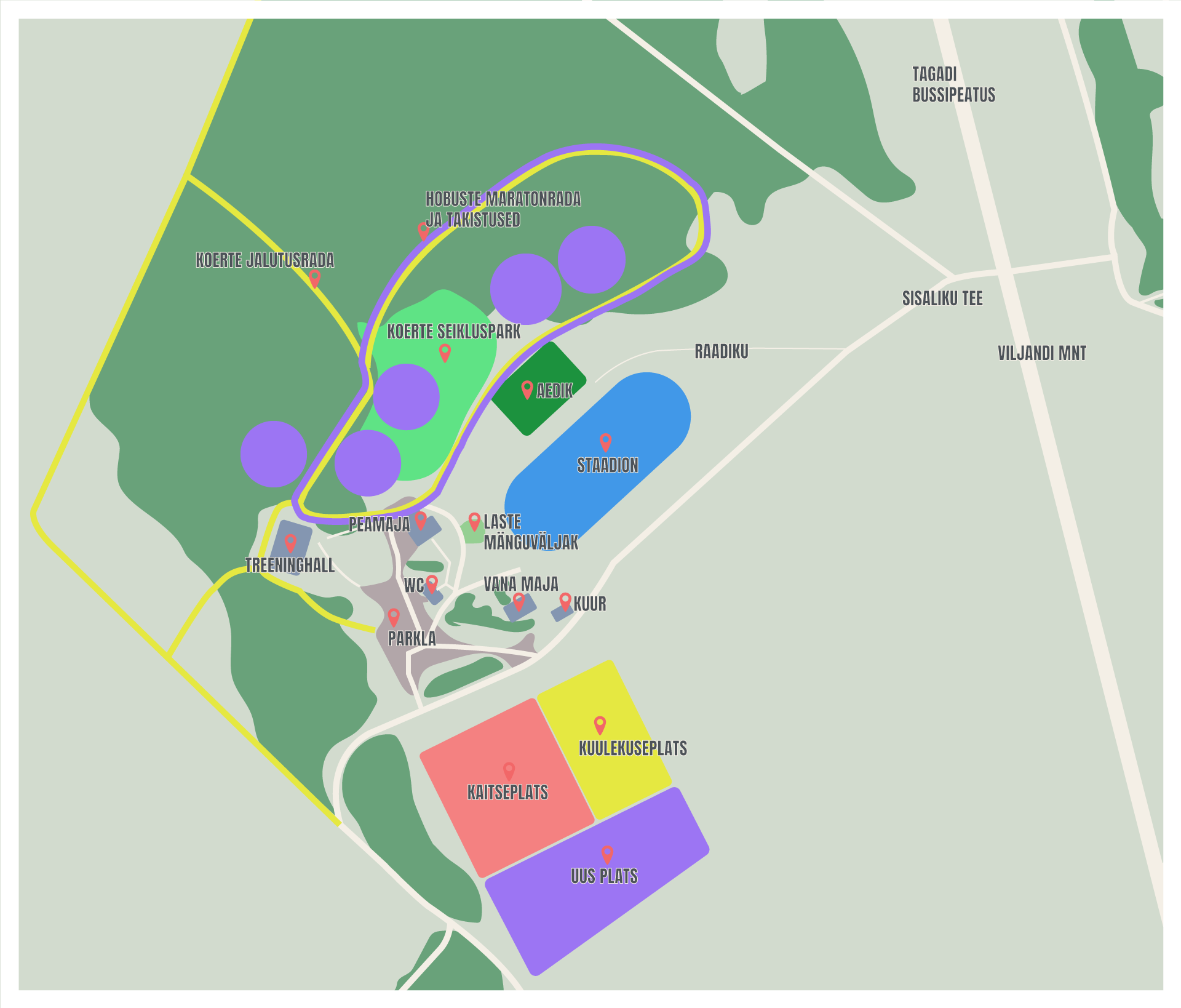 Meie treeningkeskus koosneb kolmest suurest treeningplatsist, mugavast sisehallist, valgustatud staadionist, koerte seikluspargist ning valgustatud parklast.